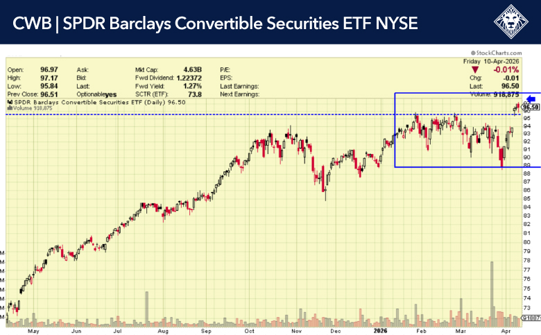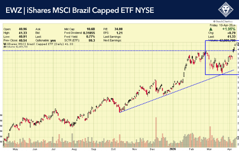 Look at the SPDR Convertible Bonds ETF (CWB), which broke out last week, along with MaxLinear, Inc. (MXL) and TTM Technologies, Inc. (TTMI). We think that Brazil, via the iShares MSCI Brazil ETF (EWZ), is also looking very interesting – with significantly higher upside if a commodity bull persists. While oil has driven recent gains, Brazil’s equity performance is supported by broad commodity exposure including iron ore, agriculture, and metals.